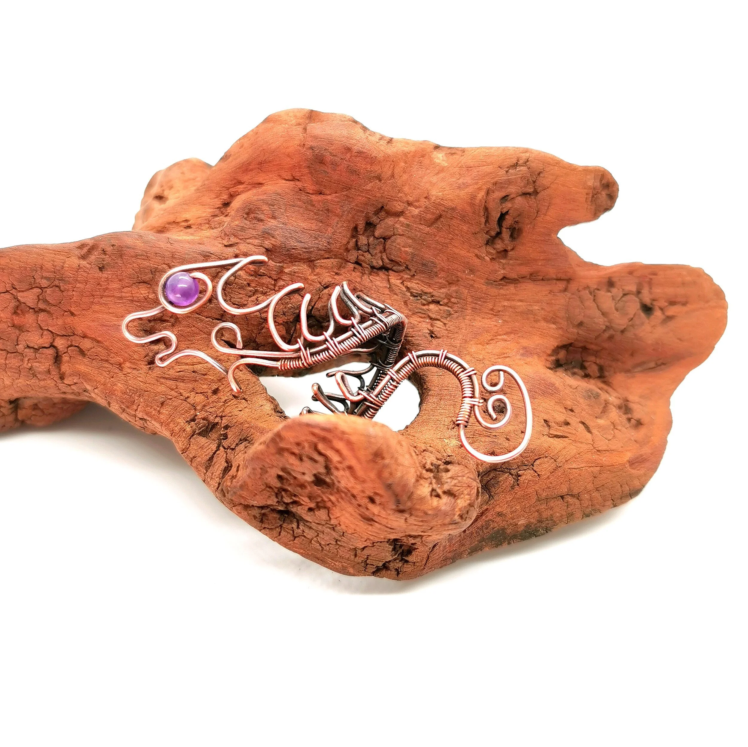 Cute adjustable wire wrapped Dragon rings with various gemstones wrapped in antiqued copper.